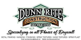 We are a family owned and operated business with over 25 years experience in Palm Beach County known for it’s professionalism, cleanliness and attention to detail workmanship quality. At Dunn Rite Construction, Inc. in Lake, Worth, FL we are a company that specializes in interior metal framing, all phases of drywall, drywall spray textures and hand textures.